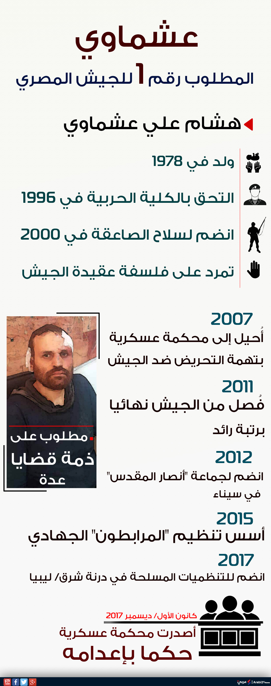 وفي كانون الأول/ ديسمبر 2017، أصدرت محكمة عسكرية مصرية حكما بإعدام 10 أشخاص بينهم الضابط السابق هشام عشماوي، وبالسجن المؤبد لـ 22 آخرين، في القضية المعروفة إعلاميا بقضية "أنصار بيت المقدس3".